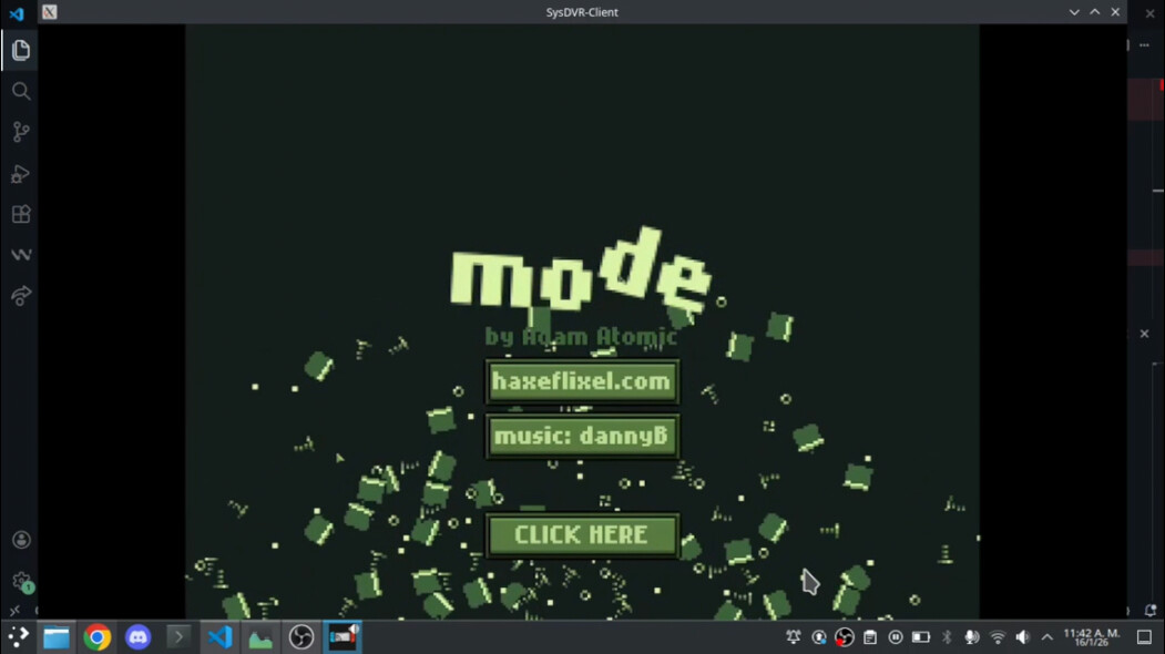 Currently, the OpenFL examples have been able to run without any major issues, and I’ve also been able to run one of the HaxeFlixel Demos games, MODE!