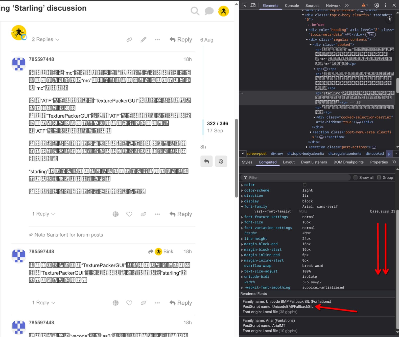 Perhaps that’s sufficient though for the purposes of the forum. The website itself isn’t supplying a web-font that supports the characters, but presumably, users on systems needing those characters have the fallback fonts necessary? For everyone else (such as us), it’s just chance.